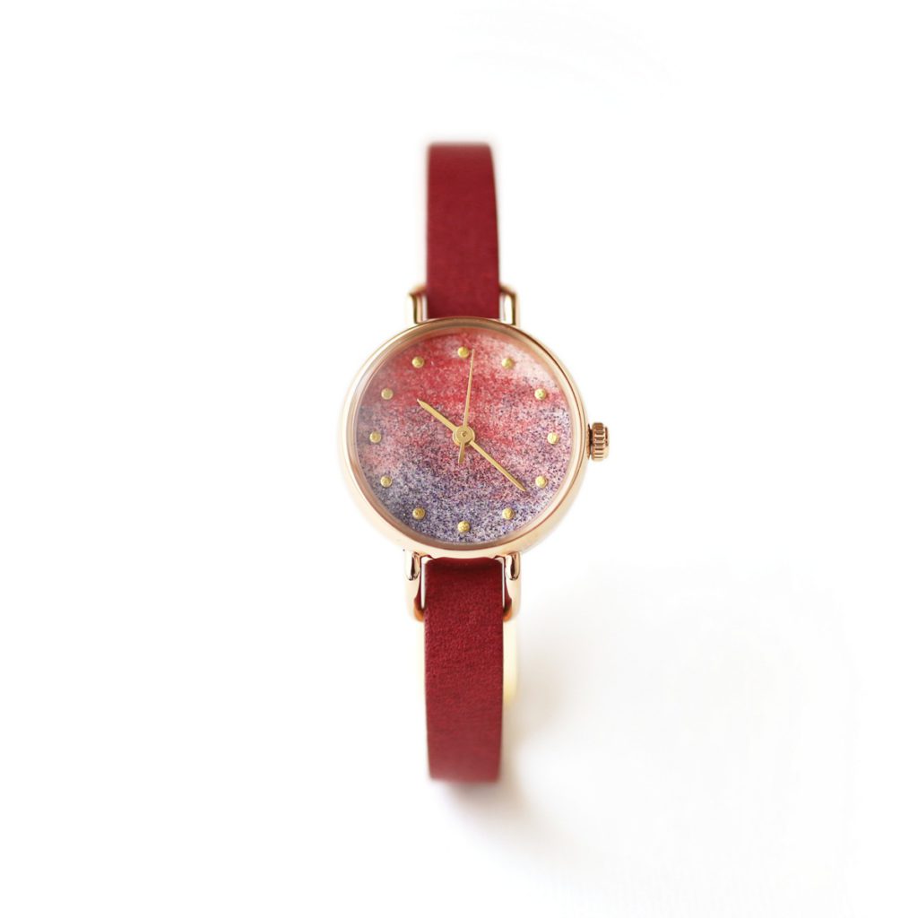 漆や金箔、岩絵具、和紙などを使用し、着物にも合う、日本の美を身近に楽しむことのできる時計です。
