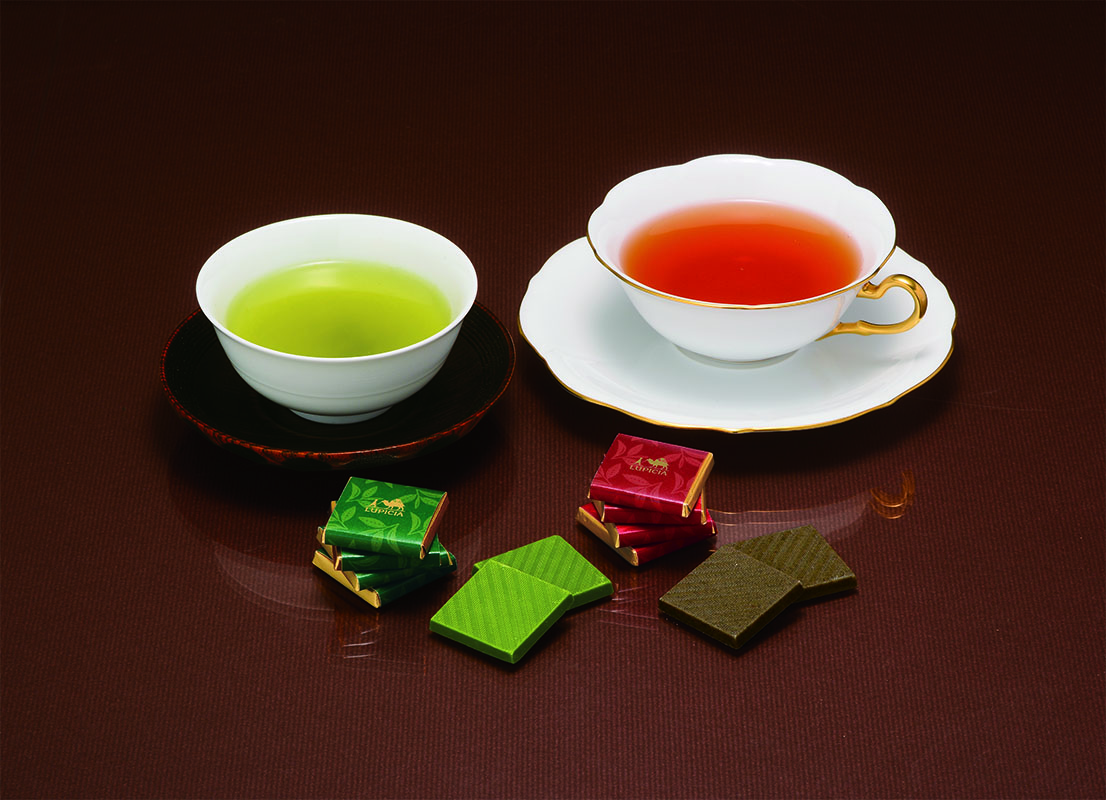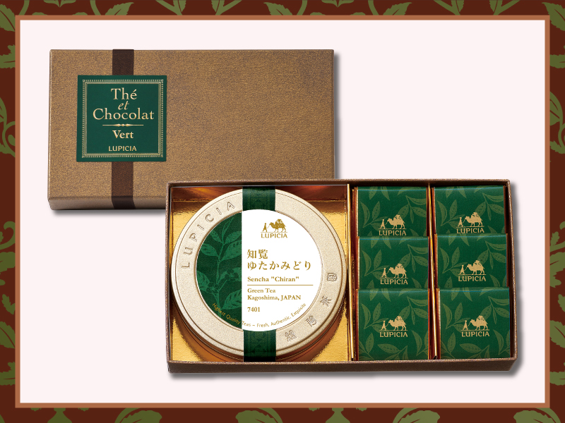 【取扱店舗】グランスタ丸の内店のみほっこり甘い香りが楽しめる、まろやかな味わいの深蒸し煎茶「知覧 ゆたかみどり」と、ホワイトチョコレートに京都産の上質な抹茶を練り込んだ「ショコラテ カレ 抹茶」のミルキーな甘さが口の中で溶け合います。