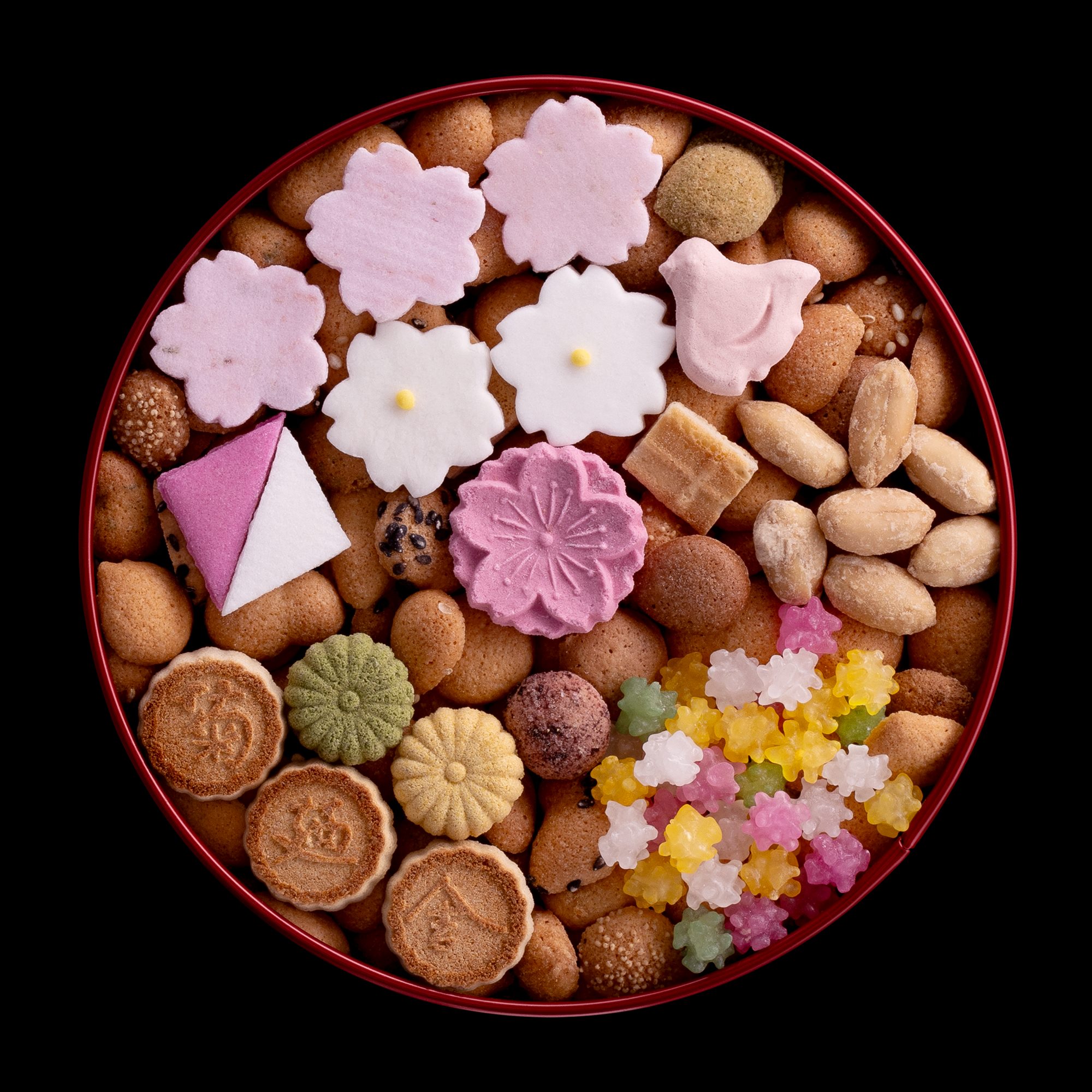 和風クッキー、金平糖、和三盆糖、打ち物など、職人がひとつひとつ丁寧に作った、小さくてかわいらしい干菓子が缶にぎっしり!楽しい、おいしい、どこか懐かしい、素朴なお菓子です。